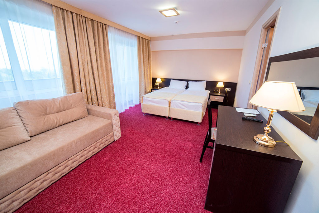 Гости размещаются в номерах категорий стандарт, комфорт, комфорт плюс, люкс, люкс семейный и апартаменты.